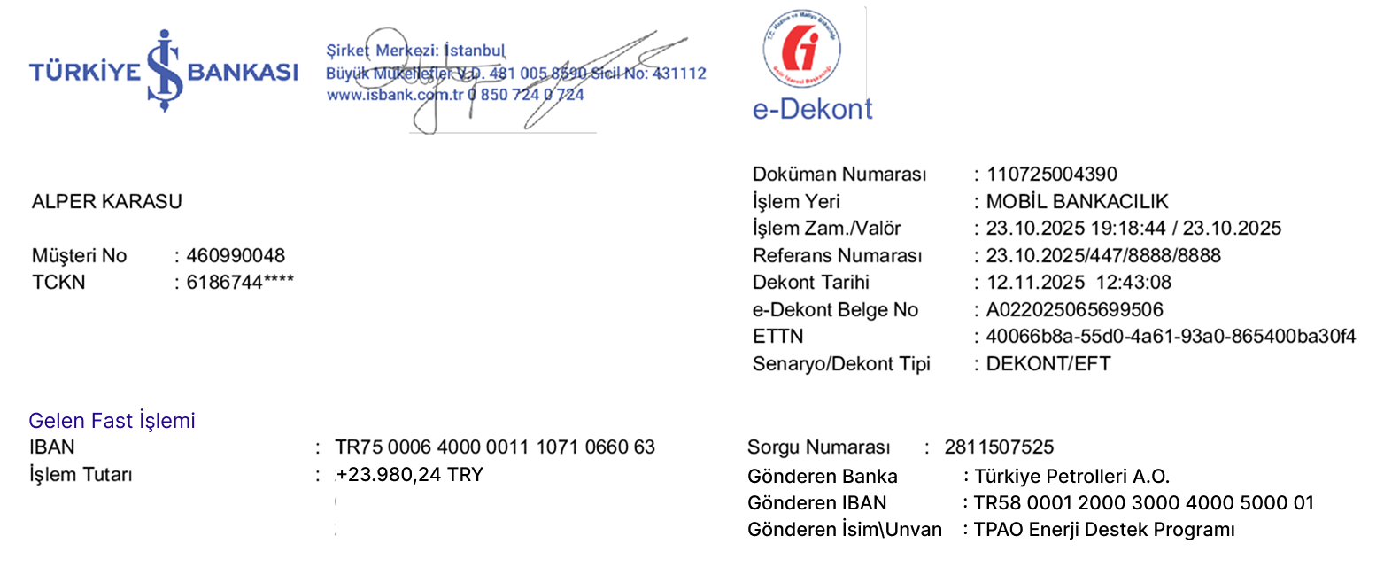 "Formu doldurdum, hemen aradılar. Her şeyi açıkladılar, kaydımı yaptılar. İlk ödememi 6 gün içinde aldım. İşte kanıt!"